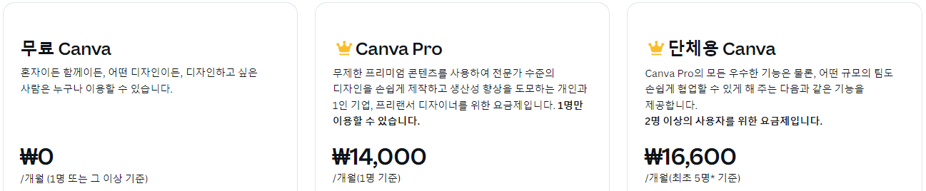 유료비용이 가장 저렴한 캔바라고는 하지만